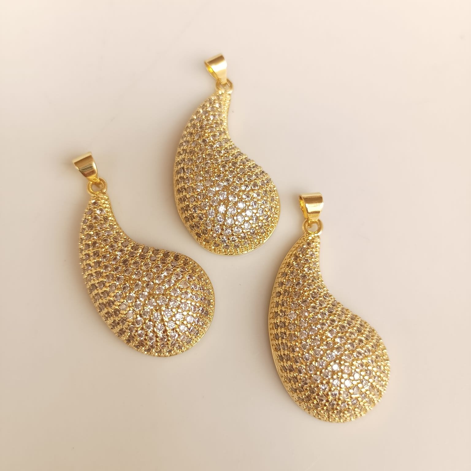 Reinventamos las perlas. Diseño con perla luminosa dentro de un marco dorado de formas redondeadas orgánicas. Estética «Vintage Moderno» muy sofisticada.